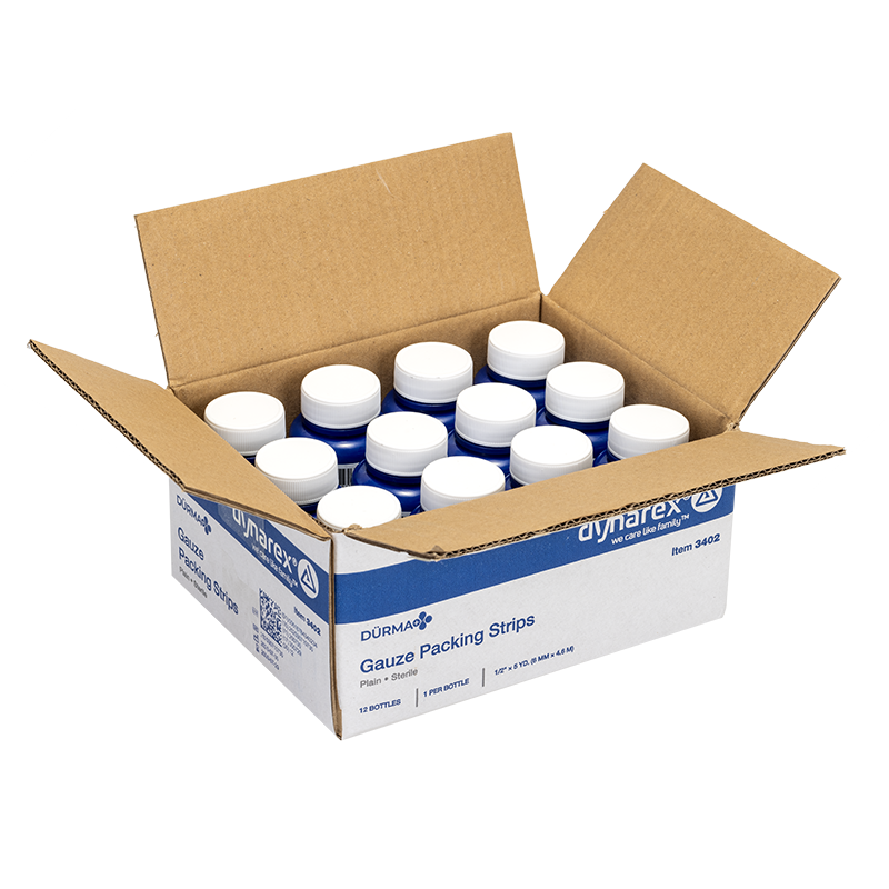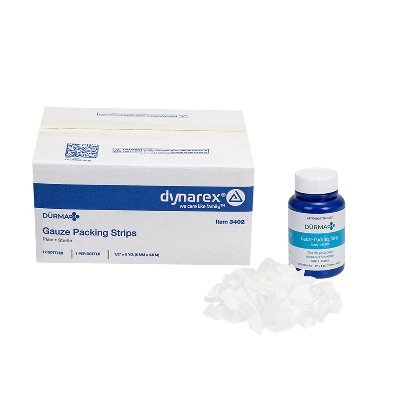 Dürma+ Packing Strips are 100% cotton strips designed for sterile drainage of open or infected wounds, nasal packing, or use as drainage wicks.