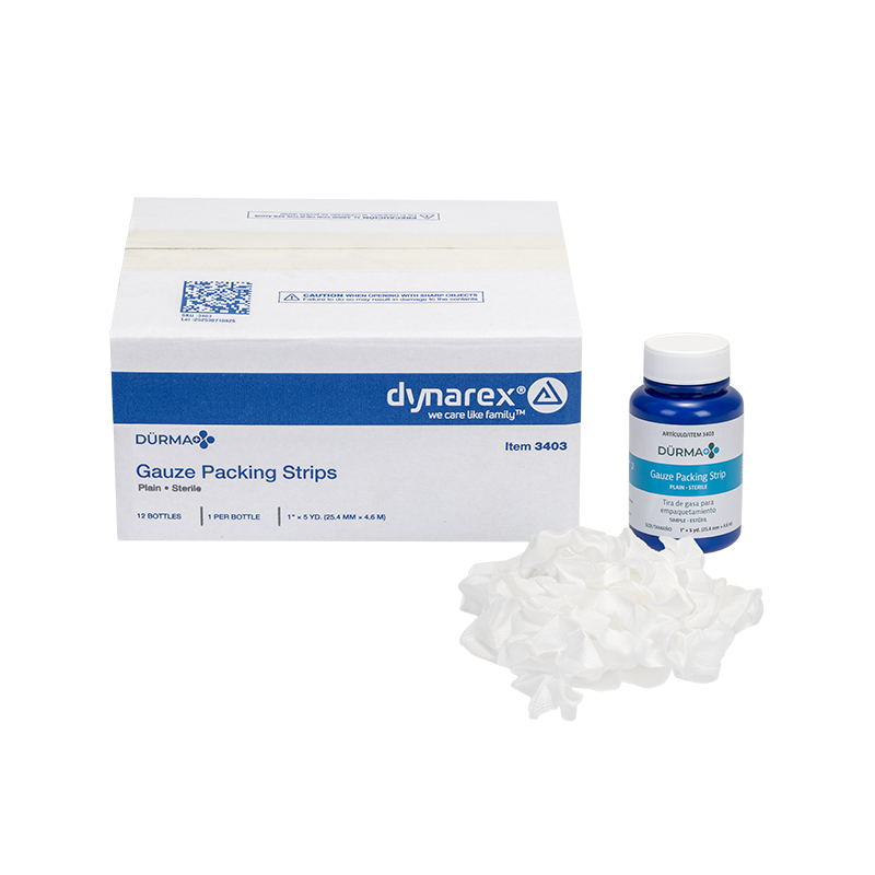 Dürma+ Packing Strips are 100% cotton strips designed for sterile drainage of open or infected wounds, nasal packing, or use as drainage wicks.