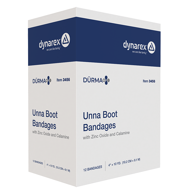 Dynarex Unna Boot Bandage are made from non-raveling thread locked gauze to help prevent wound entanglement.