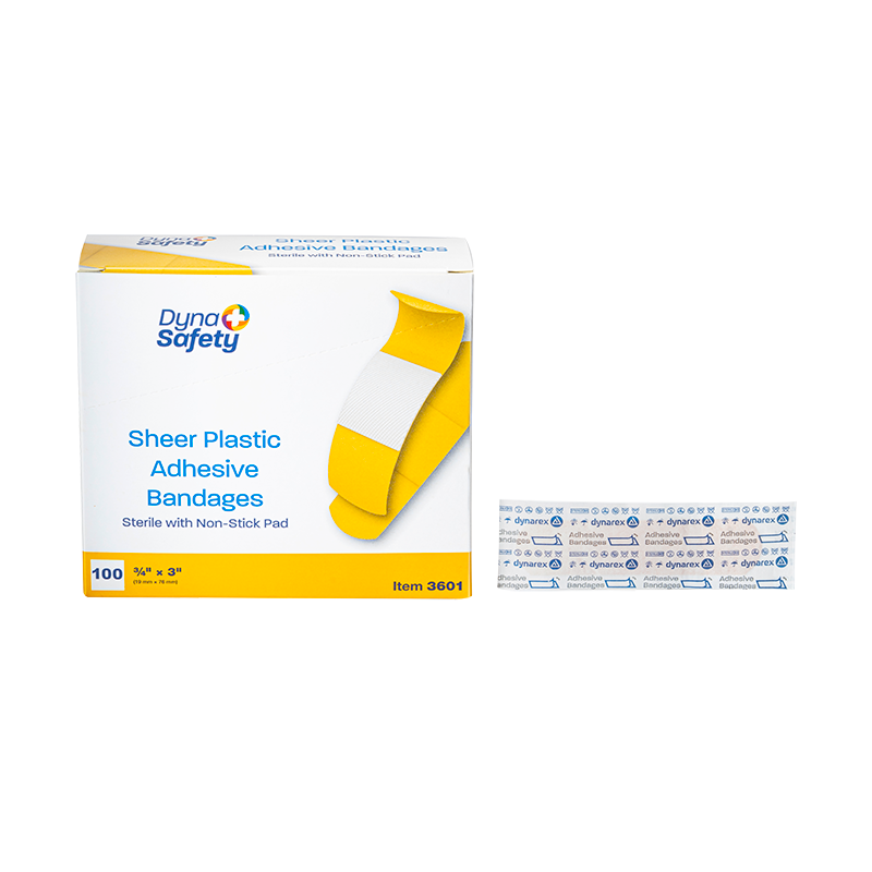 Dynarex DynaSafety Sheer Plastic Adhesive Bandages are premium-quality dressings crafted for effective protection of cuts and abrasions, featuring a long-lasting adhesive for a secure hold and non-stick pads for improved comfort.