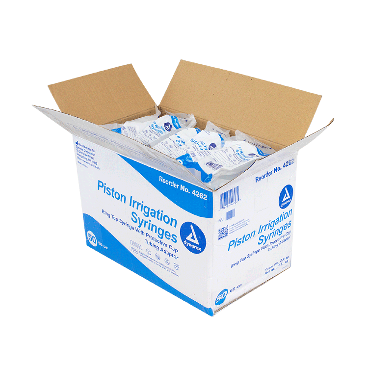 Dynarex Bulb and Piston Irrigation Syringes are crafted to provide smooth action for efficient irrigation, while allowing for convenient one-handed operation. Piston Syringes are designed with finger rests and thumb ring to help prevent slippage. Bulb Syringes feature contoured finger grips and textured surface for improved control. Easy-to-read gradations are calibrated in both cubic centimeters and ounces.