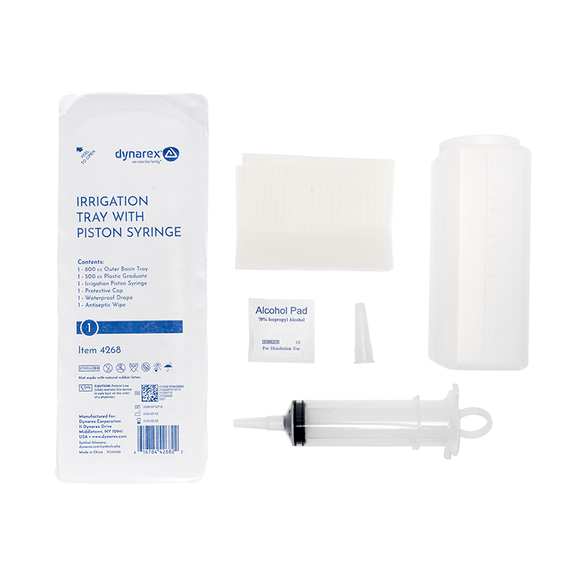 Dynarex Sterile Irrigation Trays are sterile and available with either a piston syringe or bulb syringe for convenience.