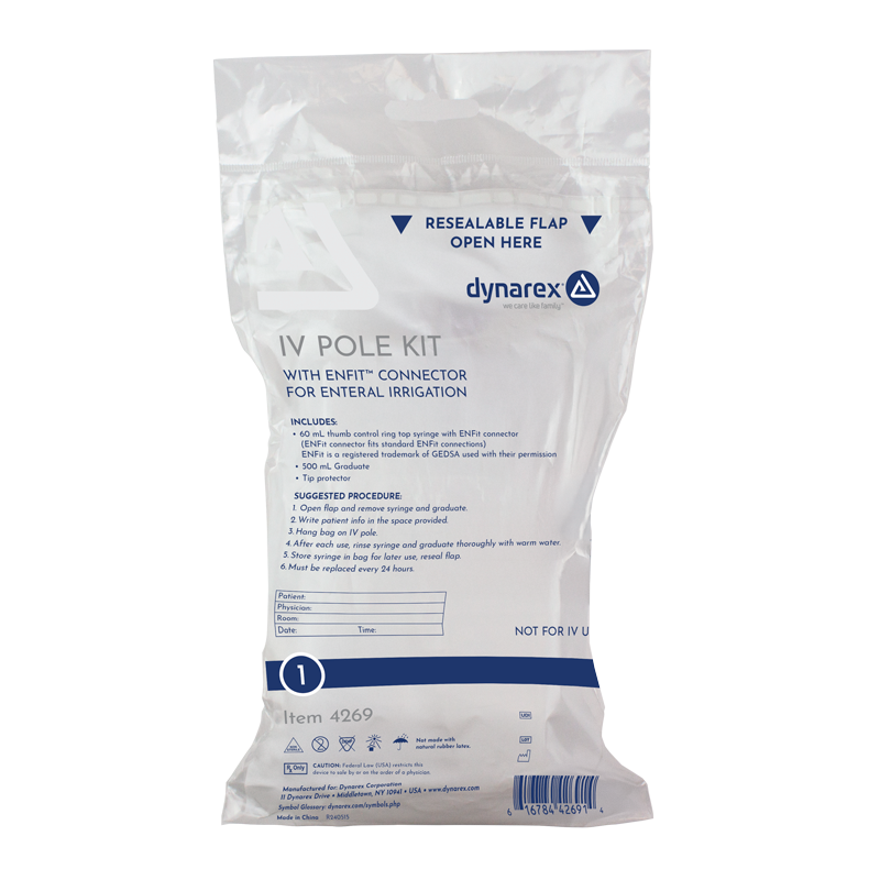Individually packaged enteral feeding syringes can be hung from an IV pole. Quantity per Case: 30