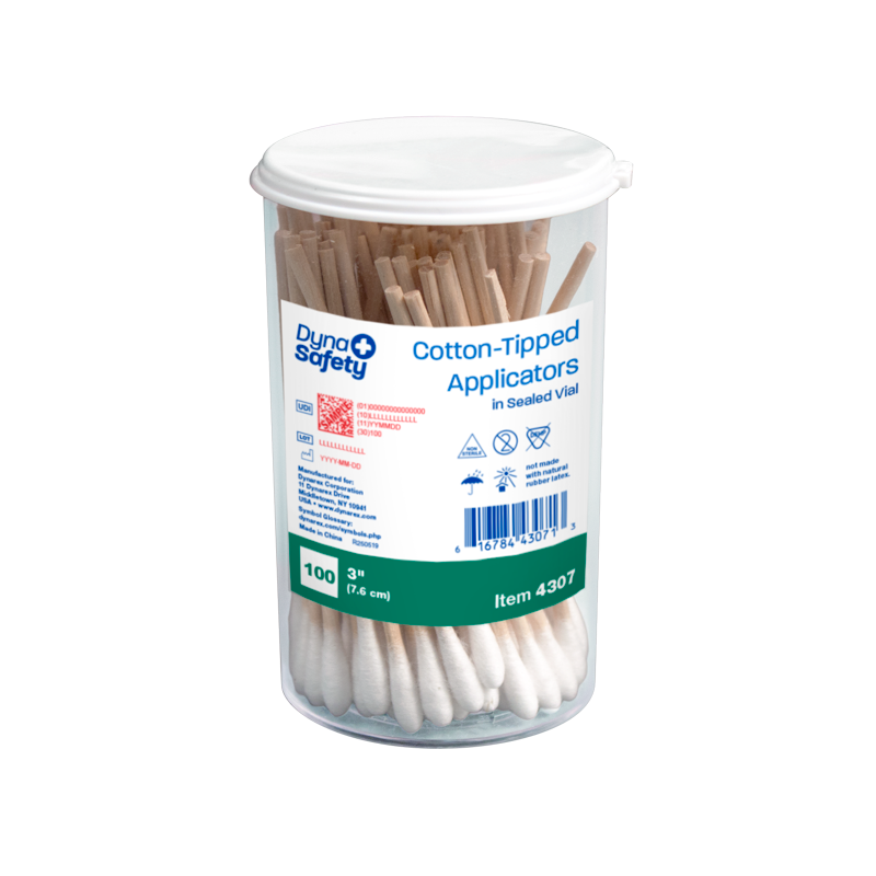 Dynarex DynaSafety Cotton Tipped Wood Applicators are designed with highly absorbent cotton to help care for wounds, apply topical dressings, and clean medical instruments. The Applicators are crafted to uniform length and shape for optimal reliability. The premium Applicators are available in sterile and non-sterile varieties and come packed in convenient pouches or clear plastic vial. Dynarex Cotton Tipped Wood Applicators are ideally sized for first-aid kits and emergency bags.