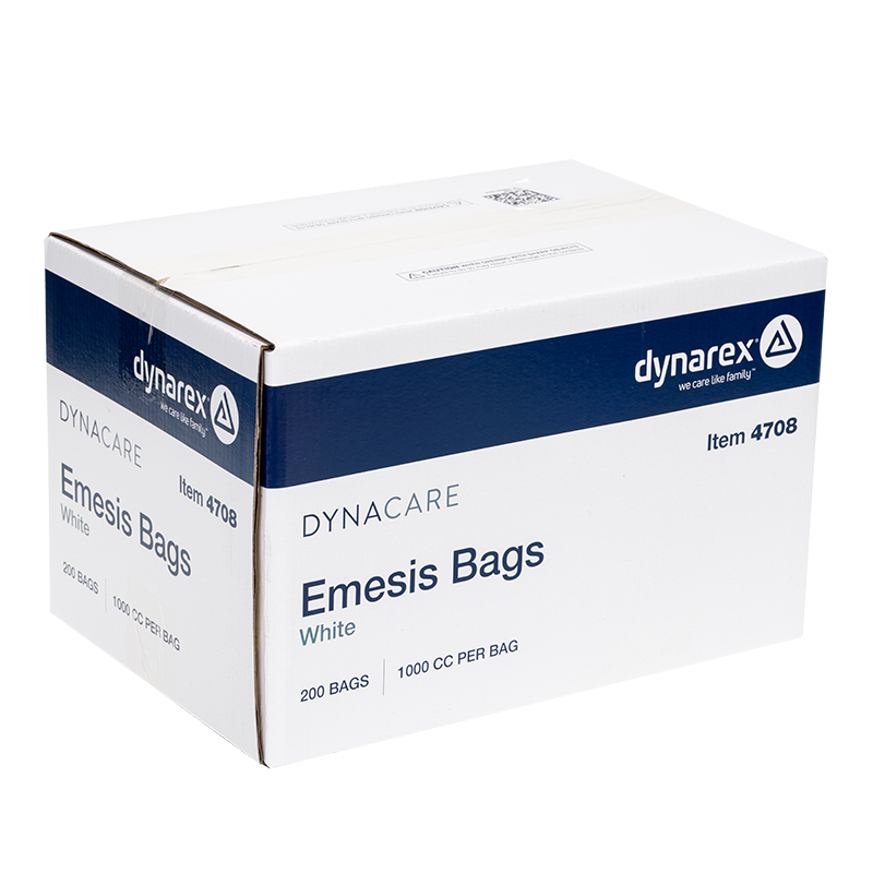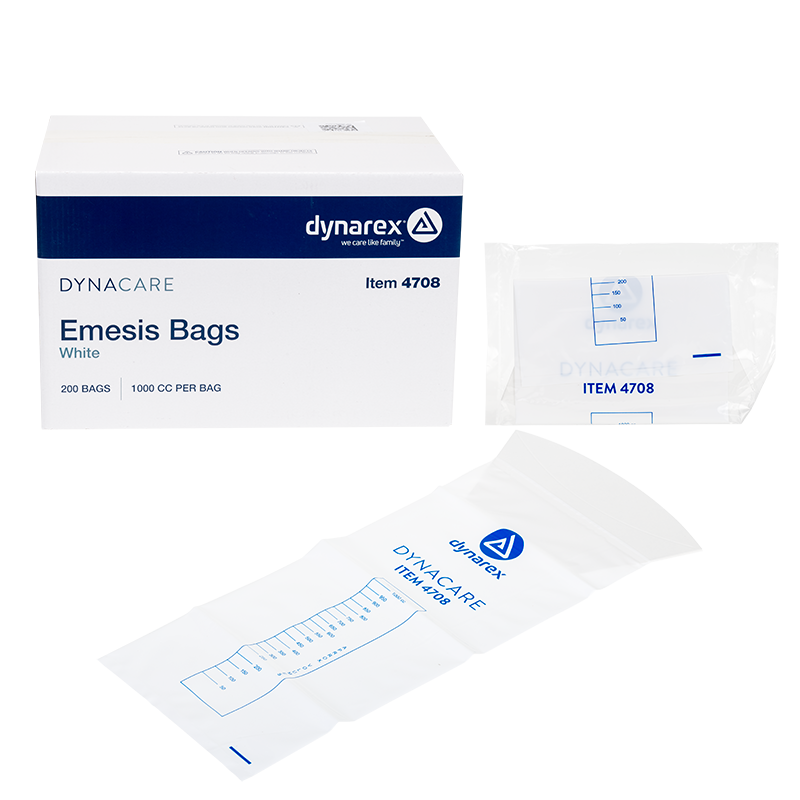 Dynarex Emesis Bags are constructed to securely contain emesis fluids and minimize the risk of spills for optimal hygiene.