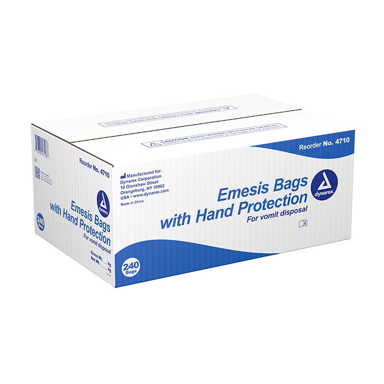 Dynarex Emesis Bags are constructed to securely contain emesis fluids and minimize the risk of spills for optimal hygiene.