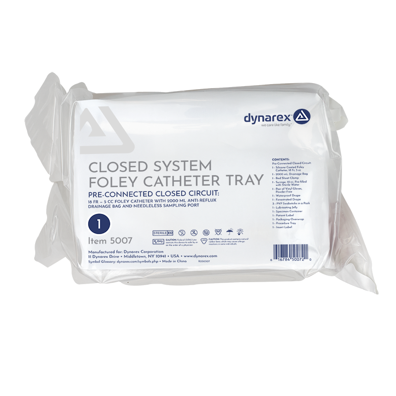 Dynarex Closed System Foley Catheter Trays contain the components needed to provide safe, simple catheterization to help minimize tissue irritation and reduce the risk of urinary tract infections.