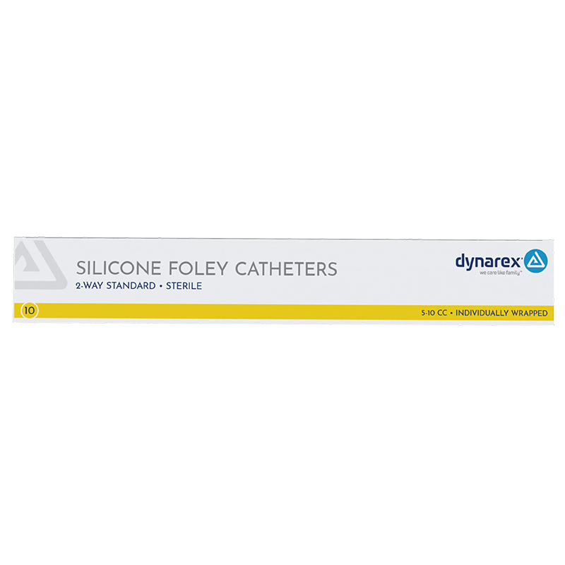 Dynarex Silicone Foley Catheters feature a 2-way design with smooth drainage eyes and a clear silicone body for easy visualization. Constructed for reliable performance and enhanced patient comfort during extended indwelling use.