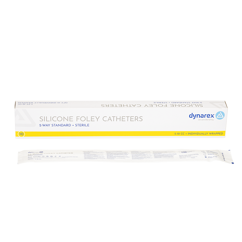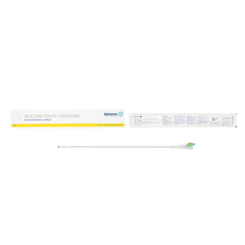Dynarex Silicone Foley Catheters are 2-way catheters designed to provide dependable drainage and improved patient comfort during long-term indwelling use. Made from clear silicone to allow easy visualization of urine flow, clots, and mucus, the catheters feature large, smooth eyes to support efficient drainage and reduce discomfort. The pliable shaft and firm tip help aid smooth insertion, while the silicone material is designed to minimize tissue irritation and reduce the risk of encrustation over time.