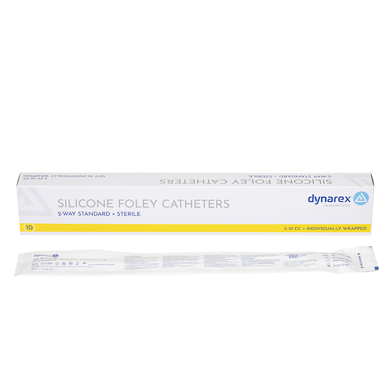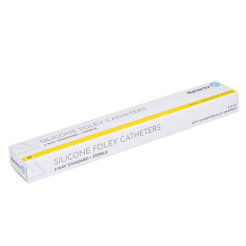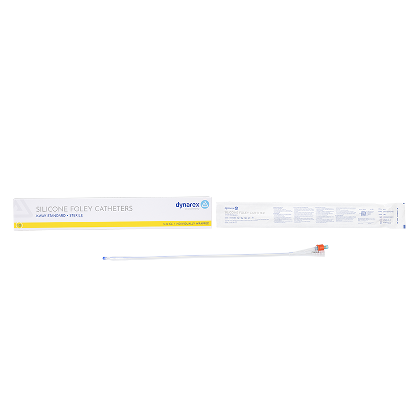Dynarex Silicone Foley Catheters feature a 2-way design with smooth drainage eyes and a clear silicone body for easy visualization. Constructed for reliable performance and enhanced patient comfort during extended indwelling use.