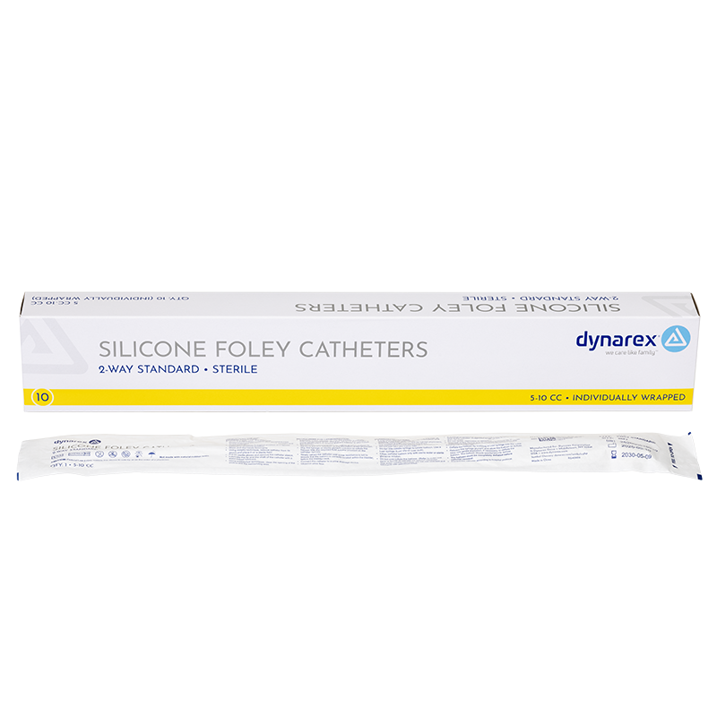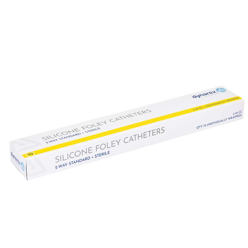 Dynarex Silicone Foley Catheters feature a 2-way design with smooth drainage eyes and a clear silicone body for easy visualization. Constructed for reliable performance and enhanced patient comfort during extended indwelling use.