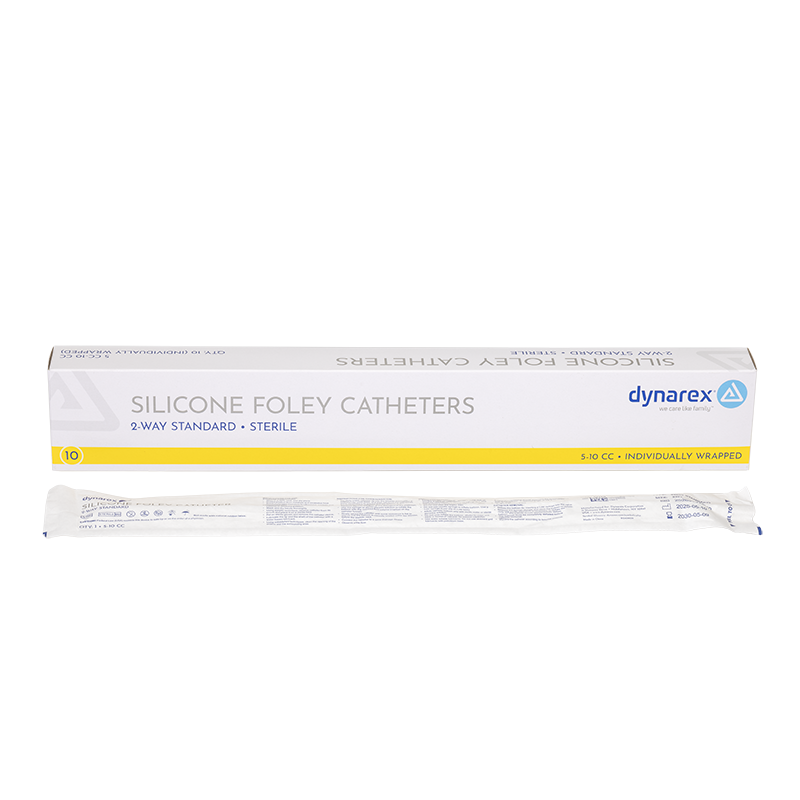 Dynarex Silicone Foley Catheters are 2-way catheters designed to provide dependable drainage and improved patient comfort during long-term indwelling use. Made from clear silicone to allow easy visualization of urine flow, clots, and mucus, the catheters feature large, smooth eyes to support efficient drainage and reduce discomfort. The pliable shaft and firm tip help aid smooth insertion, while the silicone material is designed to minimize tissue irritation and reduce the risk of encrustation over time.