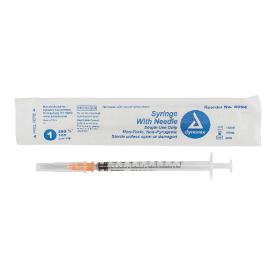The Dynarex Syringe with Needle features a high-quality, thin-walled needle designed with a double-beveled tip for smooth insertion and added comfort during injections. The Syringe’s transparent polypropylene barrel with bold-font numbering allows for easy measurement and accurate medication dosing.