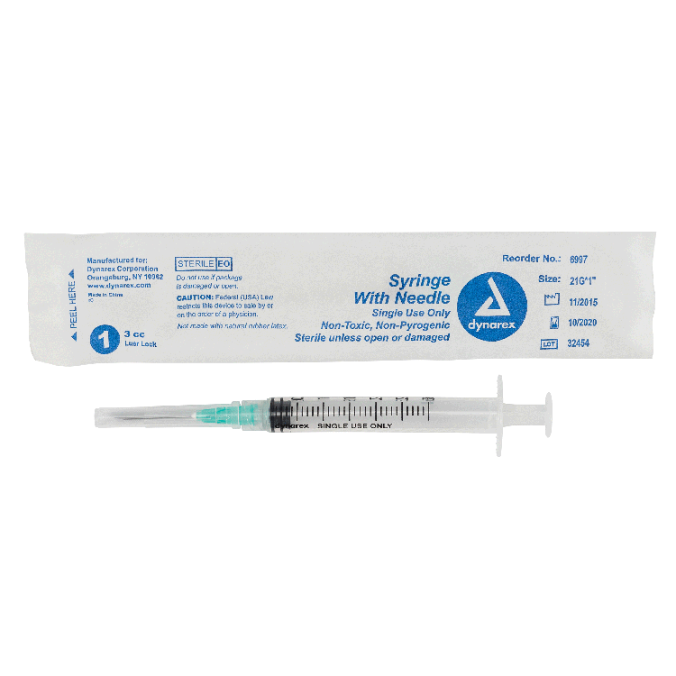 The Dynarex Syringe with Needle features a high-quality, thin-walled needle designed with a double-beveled tip for smooth insertion and added comfort during injections. The Syringe’s transparent polypropylene barrel with bold-font numbering allows for easy measurement and accurate medication dosing.