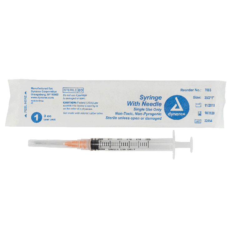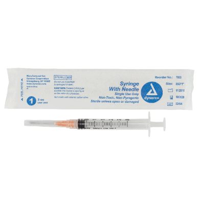 The Dynarex Syringe with Needle features a high-quality, thin-walled needle designed with a double-beveled tip for smooth insertion and added comfort during injections. The Syringe’s transparent polypropylene barrel with bold-font numbering allows for easy measurement and accurate medication dosing.
