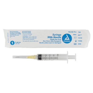 The Dynarex Syringe with Needle features a high-quality, thin-walled needle designed with a double-beveled tip for smooth insertion and added comfort during injections. The Syringe’s transparent polypropylene barrel with bold-font numbering allows for easy measurement and accurate medication dosing.