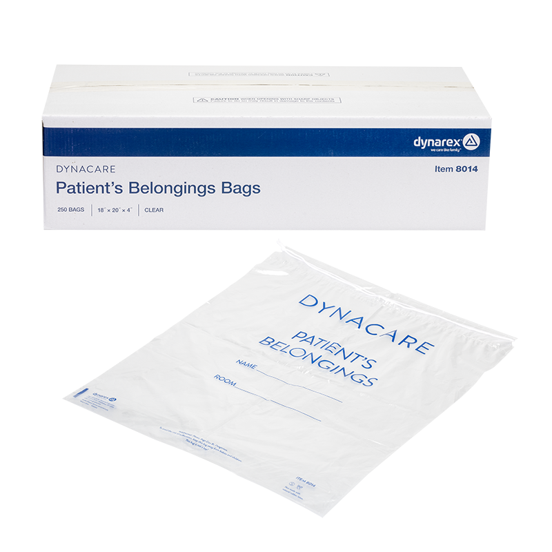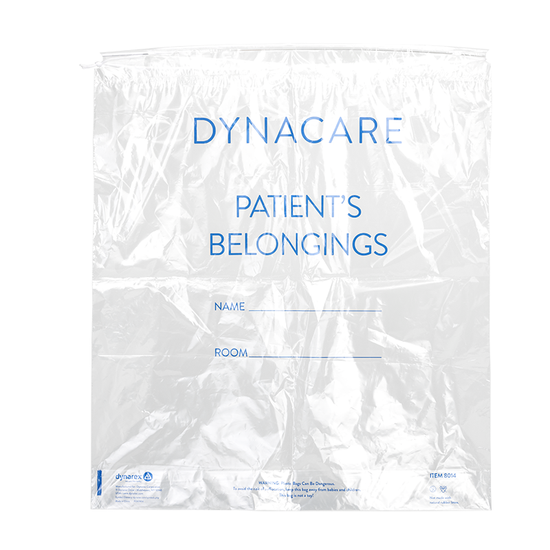 • Durable plastic bags designed to hold and transport patients’ belongings