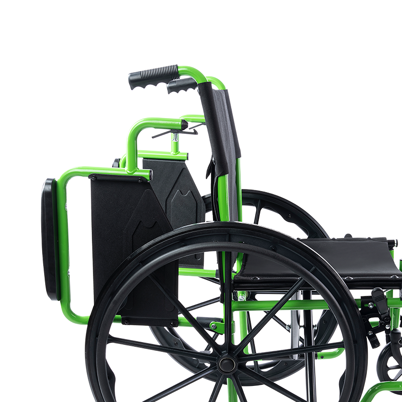 The Dynarex Greenline Cruiser Wheelchair is a premium-quality wheelchair ergonomically designed for enhanced comfort and convenient portability. The wheelchair features a durable steel frame for optimal support and push-to-lock wheel locks for added security. Snap-on solid rubber tired mounted on composite wheels provide a consistently smooth ride. The Wheelchair is designed with padded desk-length armrests for added comfort. Armrests flip back for convenient, easy transfers. Available with elevating leg rests or swing-away footrests with leg straps.
