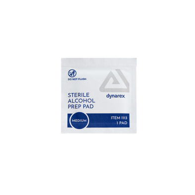 Dynarex Sterile Alcohol Prep Pads are designed to safely cleanse and prepare skin prior to injection or venipuncture. These premium-quality Pads are saturated with 70% isopropyl alcohol to help fight bacteria and germs and reduce the risk of contamination. These 1-ply, non-woven Prep Pads are soft and absorbent for improved effectiveness. The Pads are designed for single use and sealed in sterile pouches for optimal hygiene.