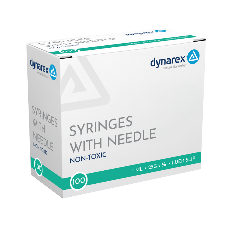 The Dynarex Syringe with Needle features a high-quality, thin-walled needle designed with a double-beveled tip for smooth insertion and added comfort during injections. The Syringe’s transparent polypropylene barrel with bold-font numbering allows for easy measurement and accurate medication dosing.