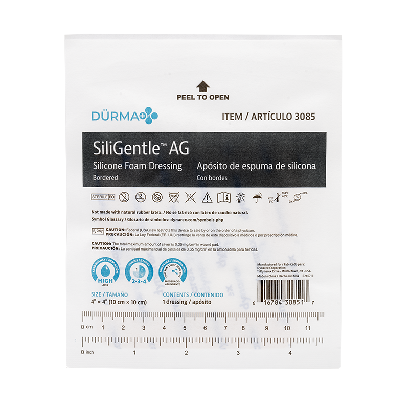 - The silver foam core absorbs exudate, while releasing silver ions into the wound bed for an antibacterial effect.