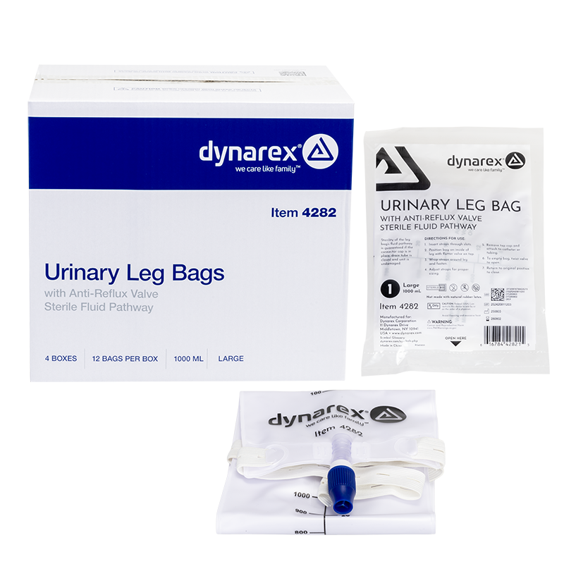 Sterile Urinary Leg Bags maintain a low profile as they rest discreetly against the leg with soft, pleated sides.
