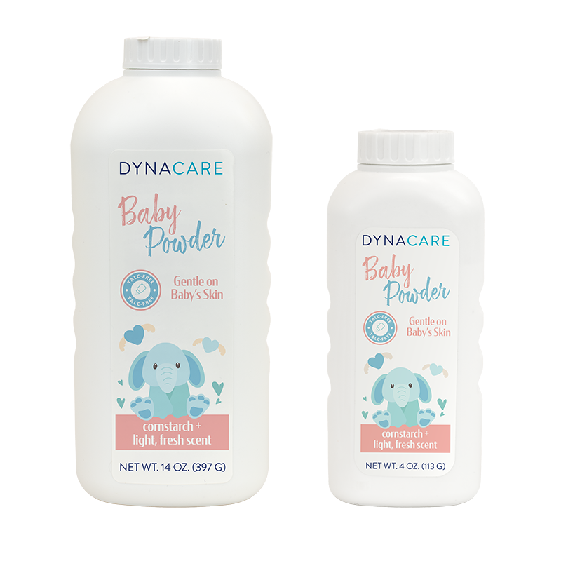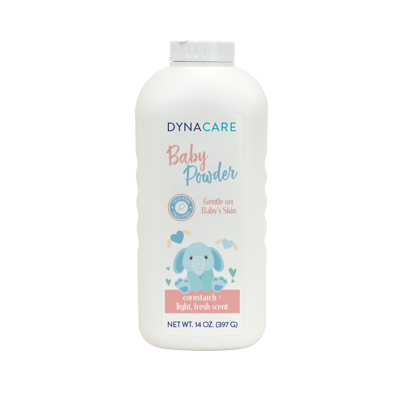 DynaCare Baby Powder is a talc-free topical powder formulated with cornstarch to help keep skin dry and comfortable. Suitable for hospitals, nurseries, and home care settings.