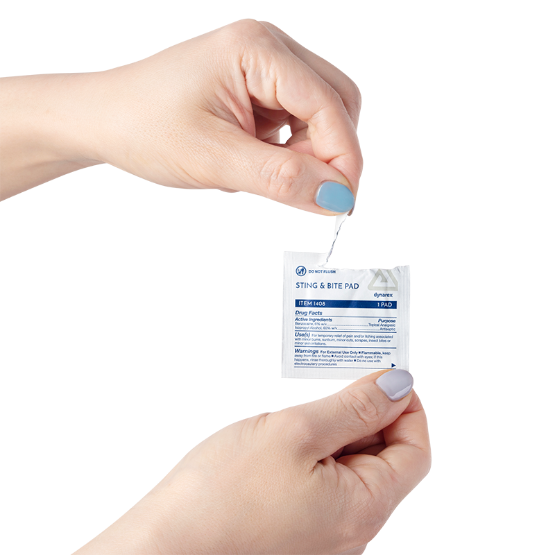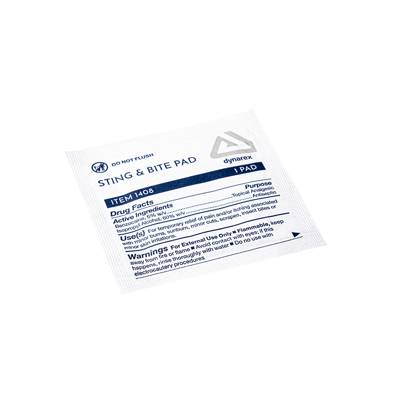 Dynarex DynaSafety Sting & Bite Pads are premium-quality wipes designed to temporarily relieve pain and irritation associated with insect stings and bites. These Bite Pads are packed in easy-to-open packets for quick access, and feature a compact size for convenient storage and portability in travel bags, first-aid kits, and backpacks.