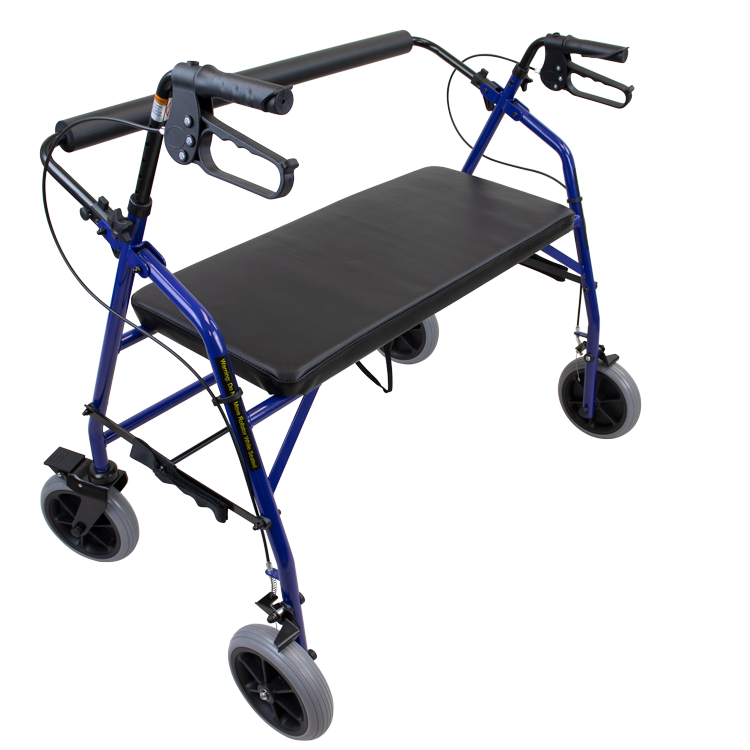 The Dynarex Bari+Max Rollator is a high-quality 4-wheeled rollator featuring a sturdy design to provide reliable stability for larger users. The Rollator features ergonomic, height-adjustable handles to suit a variety of individuals. The Rollator is equipped with a tool-free, removable padded backrest for added comfort and support and a comfortable cushioned seat for periodic resting. The Rollator’s brakes feature dual functionality for quick stopping and locking braking positions. The Rollator is designed to fold easily for optimal convenience.