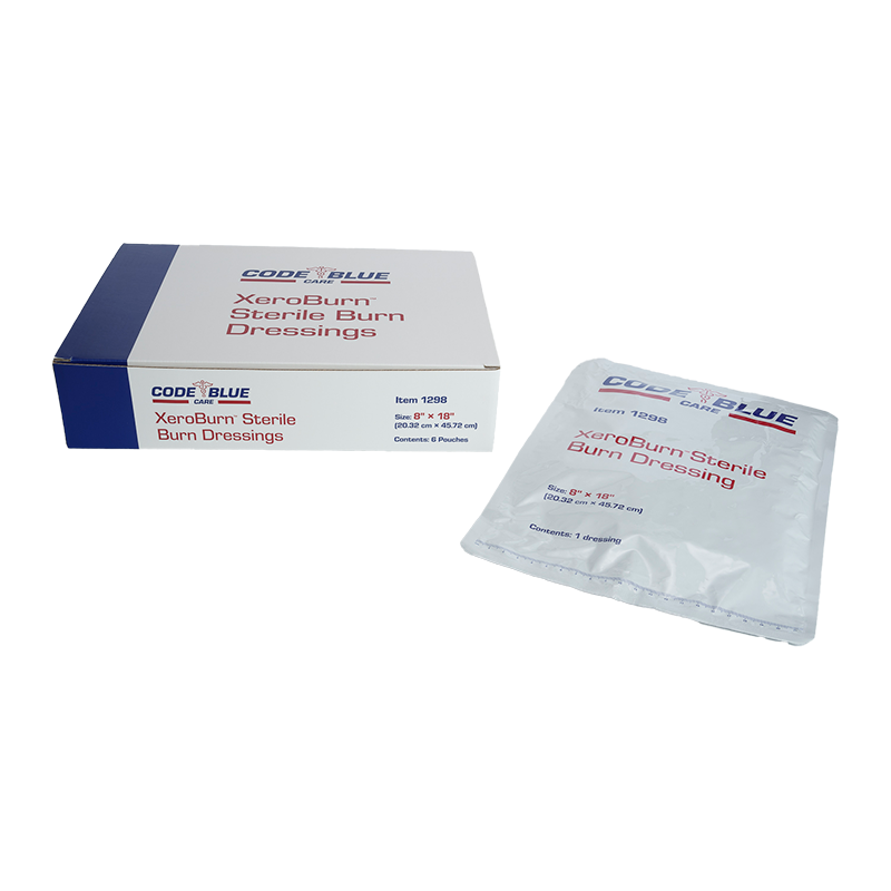 Dynarex Code Blue Care XeroBurn™ Burn Dressing is designed to help temporarily relieve pain caused by minor burns and scalds. The Dressing is formulated with tea tree oil to help protect wounds from bacteria and cool inflamed skin. The moisturizing Dressing is crafted from absorbent, non-adherent materials for improved comfort. Dynarex XeroBurn Burn Dressing is ideal for first-aid kits and other medical and homecare settings.