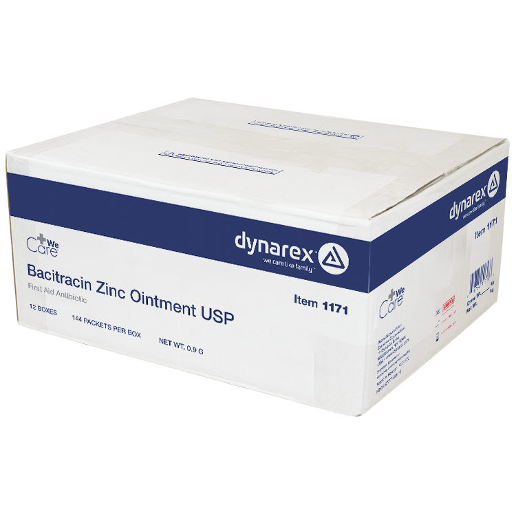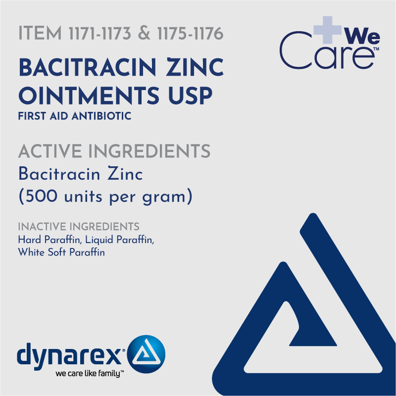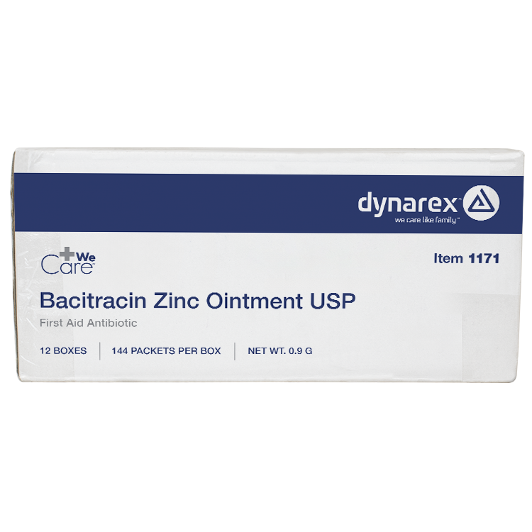 Dynarex Bacitracin Zinc Ointment USP is a premium antibiotic ointment designed to help reduce the risk of infection in minor cuts, burns, and abrasions. The high-quality zinc and bacitracin formula helps minimize bacterial growth.