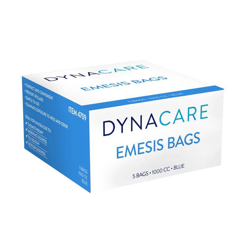 DynaCare Emesis Bags are high-quality disposable bags designed to securely contain emesis fluids and control odors. These Bags feature a large opening that provides a comfortable fit around the mouth for efficient containment. Dynarex Emesis Bags feature clearly marked graduations for monitoring fill levels. Ideal for use during motion sickness, chemotherapy, flu, and other illnesses. A refillable dispenser is also available.