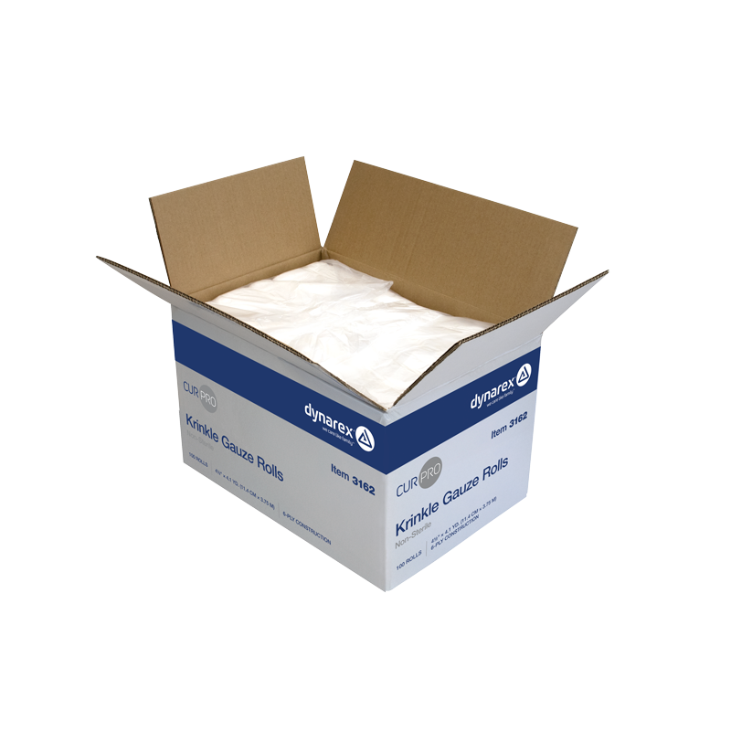 Dynarex Krinkle Gauze Rolls and Sponges are premium-quality dressings crafted from 100% cotton materials. These soft, highly absorbent Rolls and Sponges feature a crinkle-weave design to help provide cushioning support and protection for sensitive wound areas. Ideal for a variety of applications, including packing, prepping, cleansing, and bandaging wounds. The Gauze Rolls feature 6-ply construction and are available in sterile and non-sterile varieties. The Gauze Sponges are sterile and feature a diamond fold and 12-ply construction.