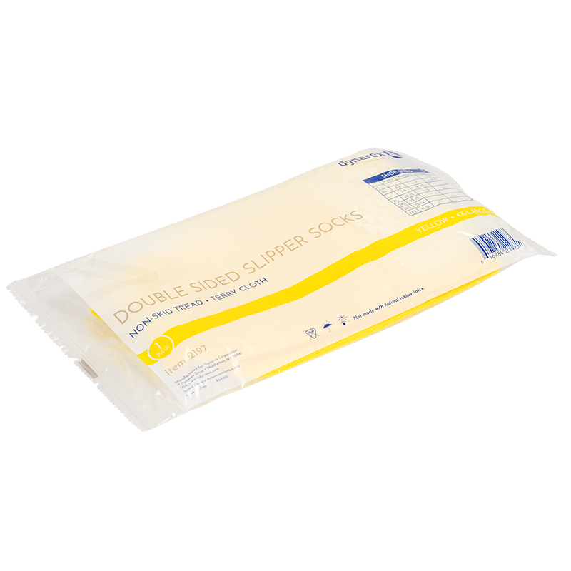 Dynarex Slipper Socks are covered with rubber grippers to help prevent patient falls. The Slippers are made of soft terrycloth to keep feet warm, dry, and comfortable. Ideal for patients in a variety of clinical and long-term care facilities.