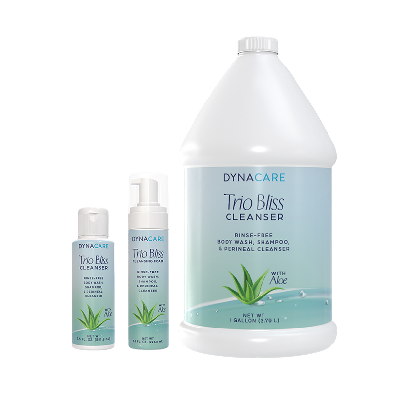 DynaCare Trio Bliss Cleanser offers a practical alternative to traditional bathing for individuals with limited mobility or restricted access to standard bathing facilities. Suitable for full-body, hair, and perineal cleansing, the rinse-free cleanser allows caregivers to complete multiple hygiene steps in one simple process. This versatile formula supports streamlined routines in long-term care, rehabilitation, post-acute settings, and home-care environments by helping reduce dependence on water and multiple products.