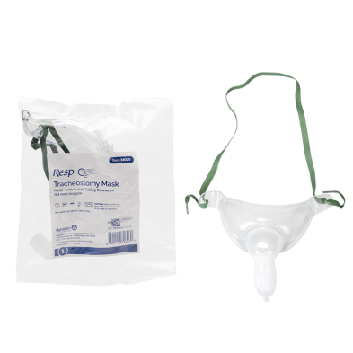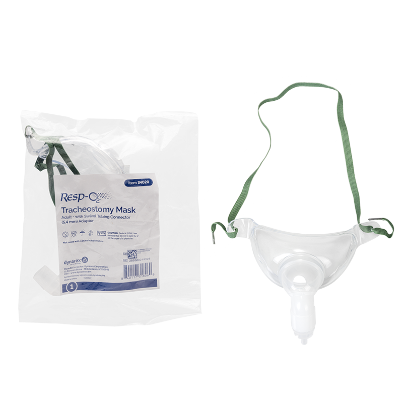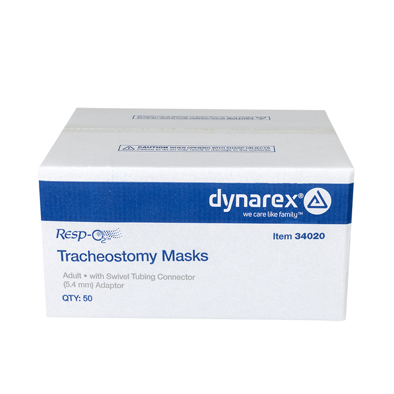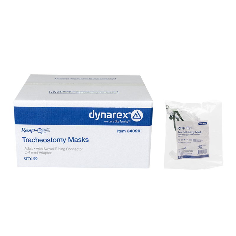 Dynarex Resp-O2 Tracheostomy Masks are designed to help administer aerosol medications and oxygen to tracheostomy patients during respiratory therapy. The collar-style masks feature swivel connectors that allow for access from either side of the patient.