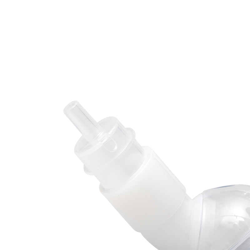- Swivel connector accepts 22 mm aerosol corrugated tubing