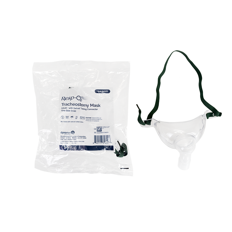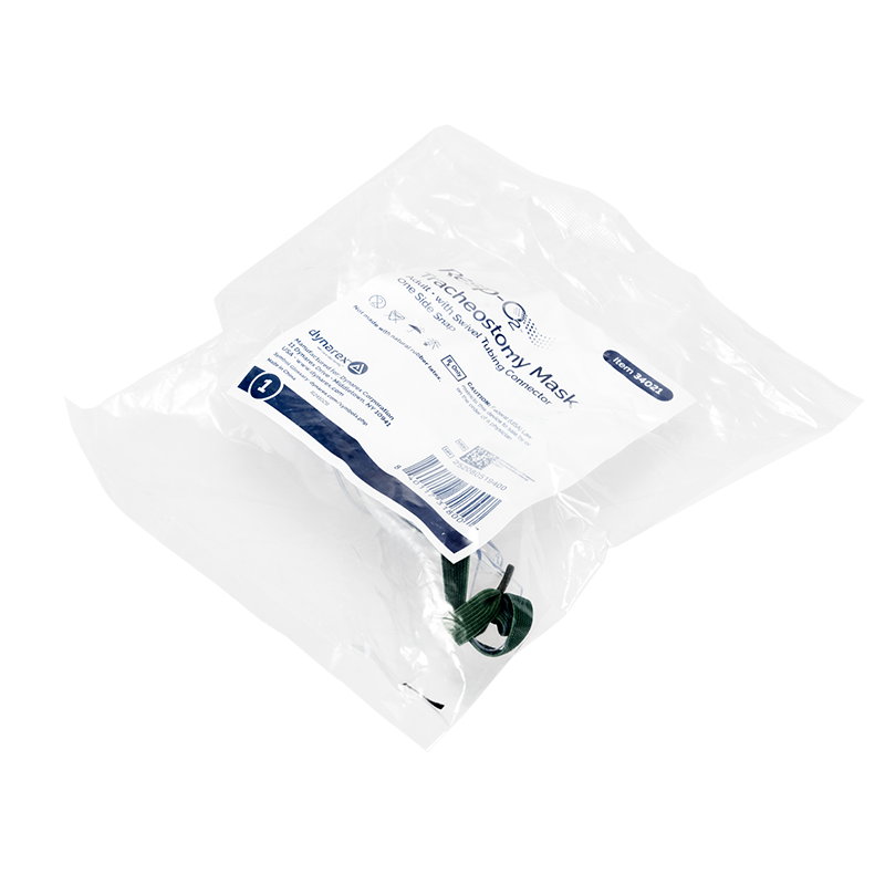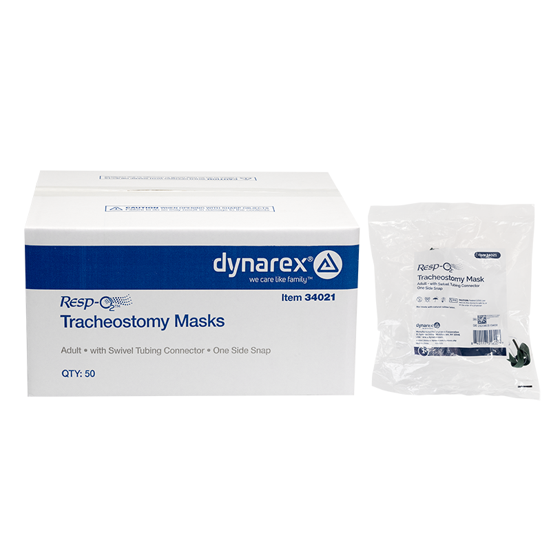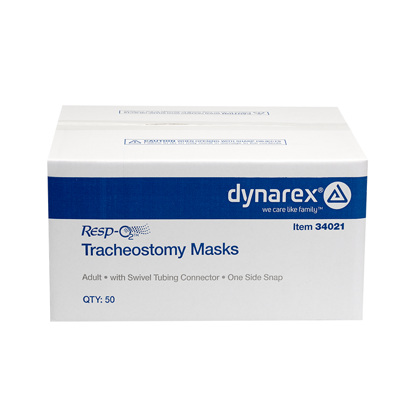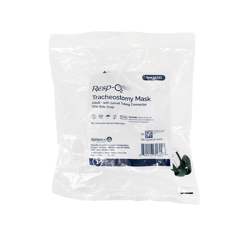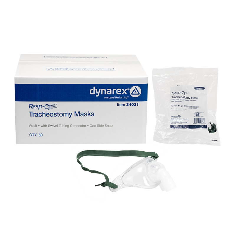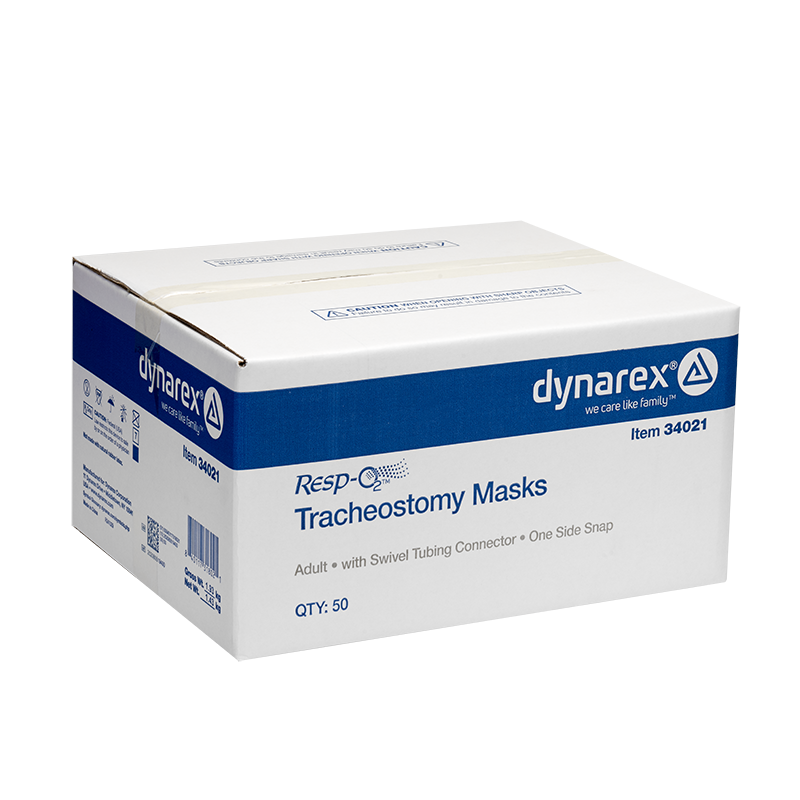 Dynarex Resp-O2 Tracheostomy Masks are designed to help administer aerosol medications and oxygen to tracheostomy patients during respiratory therapy. The collar-style masks feature swivel connectors that allow for access from either side of the patient.