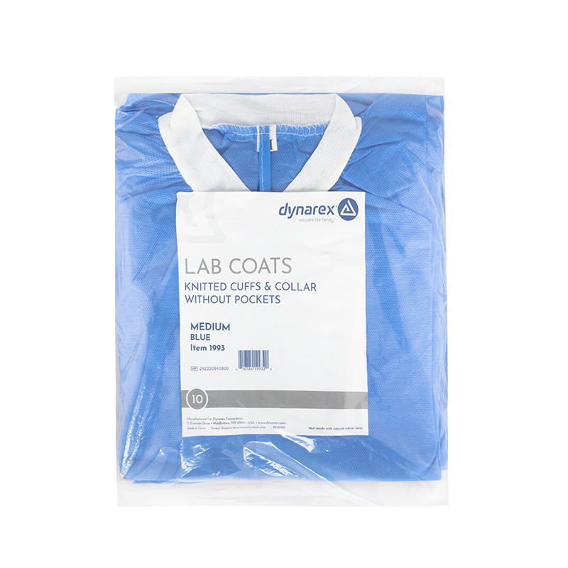 Dynarex Disposable Lab Coats are designed to protect skin and clothes from light dirt, splashes, and spills. Constructed from breathable polypropylene material, these high-quality garments provide a comfortable, non-constricting fit over everyday clothing.