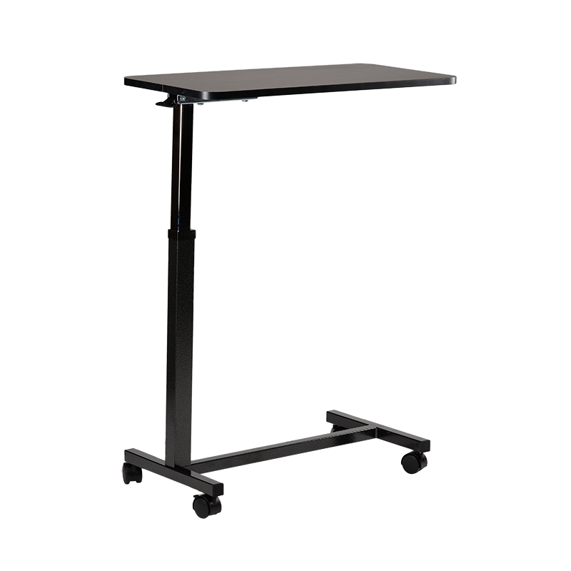 The Dynarex Overbed Table is designed for optimal convenience and accessibility. The laminate wood tabletop rolls on a height-adjustable, powder-coated base, has locking wheels, and is ideal for use in a wide range of healthcare settings.