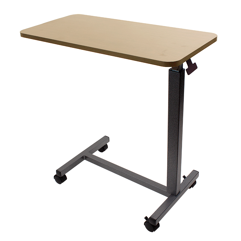The Dynarex Overbed Table is designed for optimal convenience and accessibility. The laminate wood tabletop rolls on a height-adjustable, powder-coated base, has locking wheels, and is ideal for use in a wide range of healthcare settings.