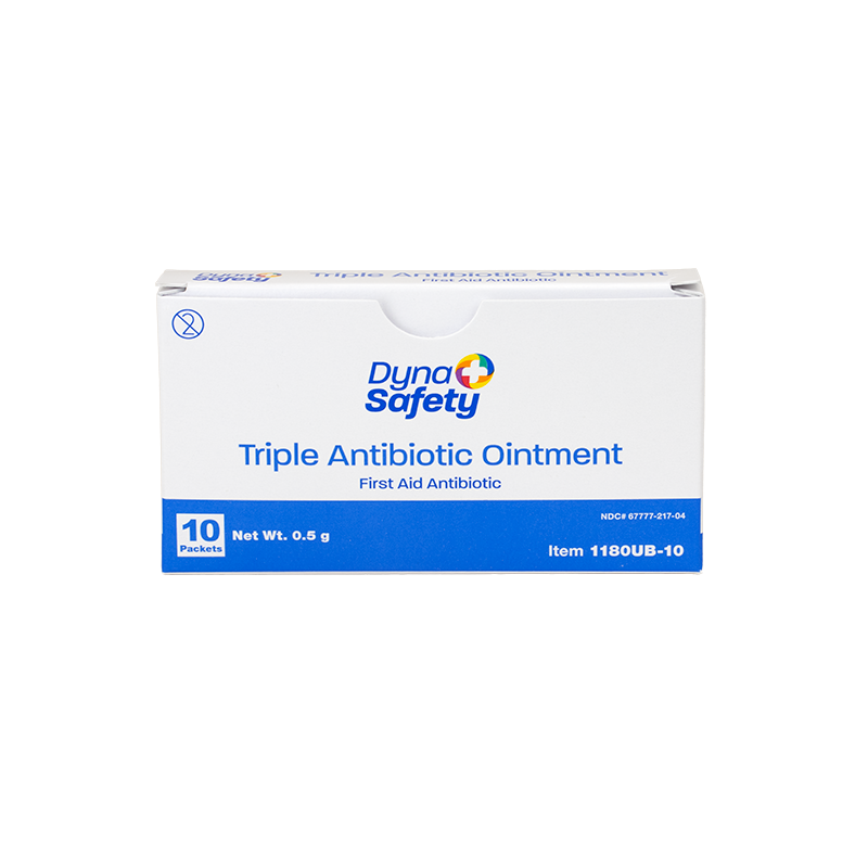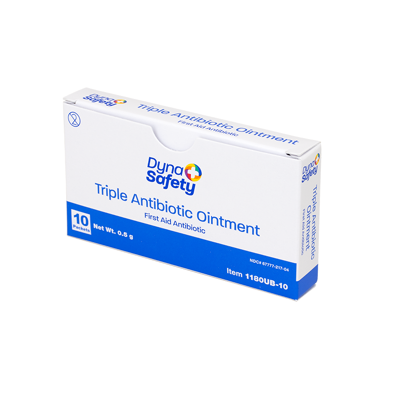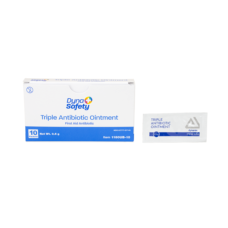 Dynarex DynaSafety Triple Antibiotic Ointment is a topical antibiotic designed to help minimize the risk of infection in minor cuts, scrapes, and burns. The triple-acting formula helps repair skin and inhibit the growth of harmful bacteria. This high-quality Ointment is available in convenient single-use packets for effortless kit-packing and easy-open tubes for quick application. Dynarex Triple Antibiotic Ointment is ideal for a wide variety of settings including first aid, medical practices, long-term care, schools, and at home. Compare Dynarex Triple Antibiotic Ointment to Neosporin® by Johnson & Johnson Services, Inc.