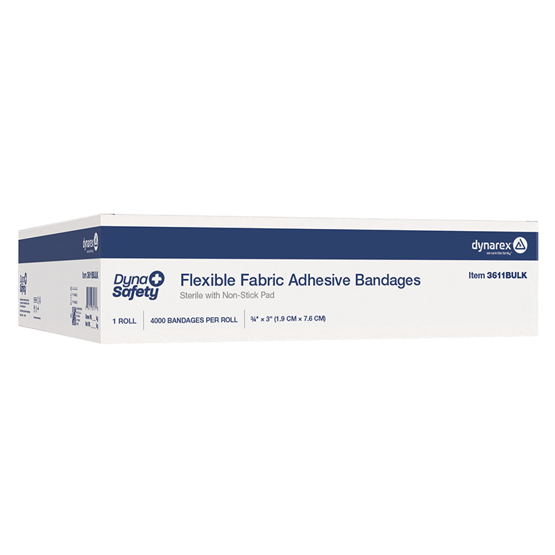 Dynarex DynaSafety Adhesive Fabric Bandages are high-quality sterile bandages designed for effectively covering and protecting minor cuts, scrapes, and burns. These Bandages feature premium adhesive material to help hold the bandage securely in place and flexible elastic materials for a comfortable fit. The Fabric Bandages are made with breathable woven fabric to help provide an optimal healing environment and a non-stick center pad for improved comfort and fluid absorption.