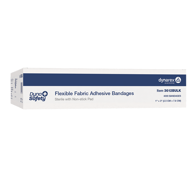 Dynarex DynaSafety Adhesive Fabric Bandages are high-quality sterile bandages designed for effectively covering and protecting minor cuts, scrapes, and burns. These Bandages feature premium adhesive material to help hold the bandage securely in place and flexible elastic materials for a comfortable fit. The Fabric Bandages are made with breathable woven fabric to help provide an optimal healing environment and a non-stick center pad for improved comfort and fluid absorption.