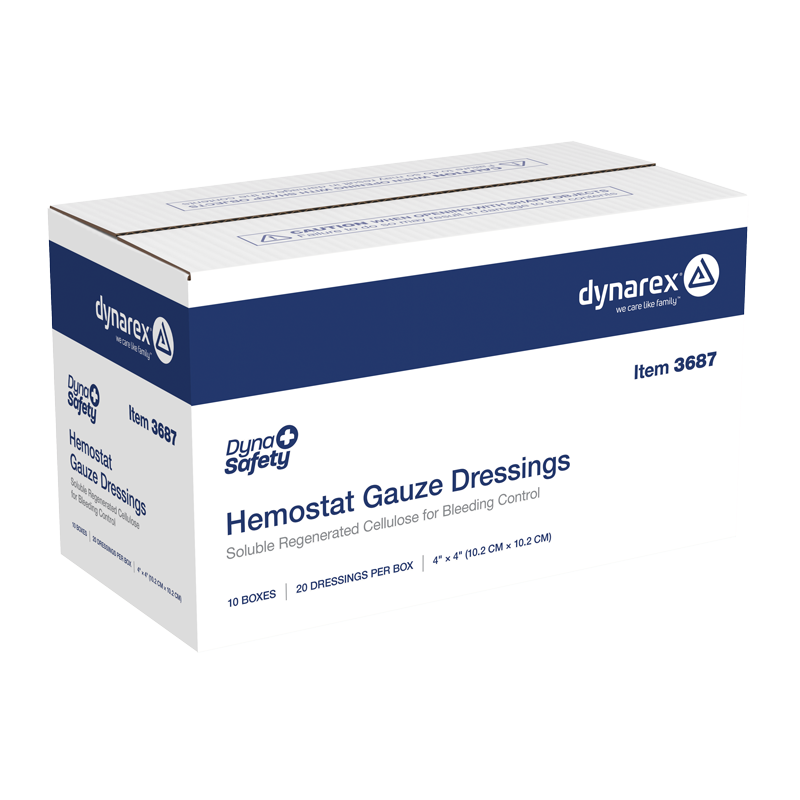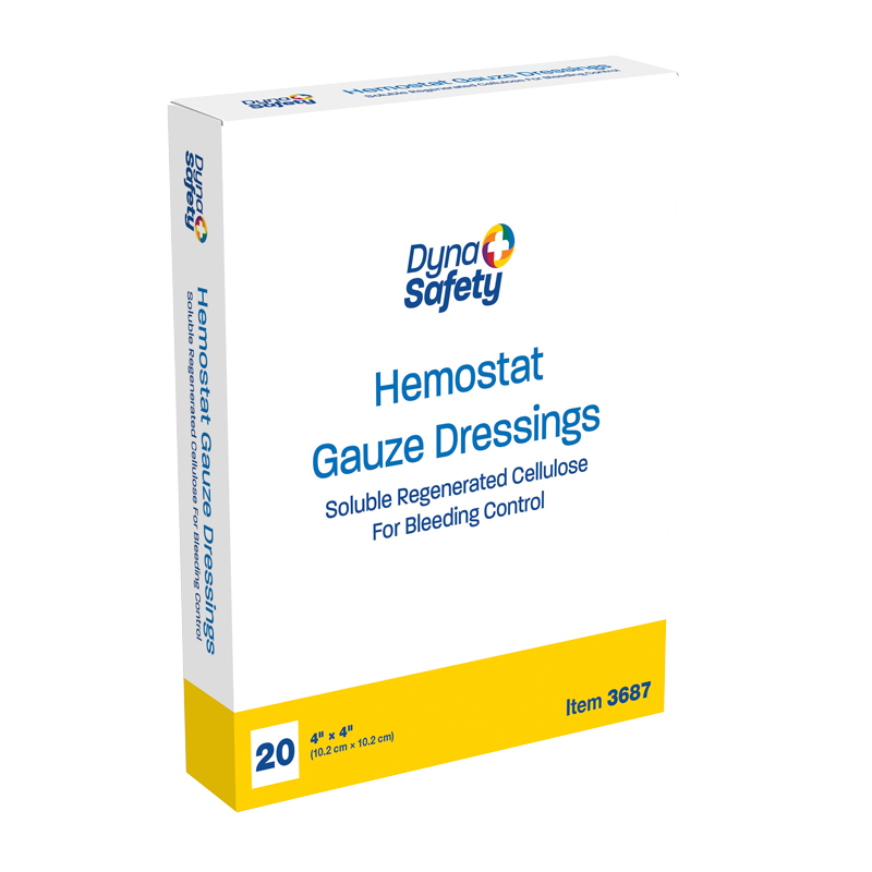 The Dynarex DynaSafety Hemostat Gauze Dressing is a premium water-soluble dressing designed to help protect wounds and manage bleeding. The Dressing contains a topical compound that coverts to a glucose gel upon contact with blood, providing direct pressure on blood vessels to help reduce bleeding. The Dynarex Hemostat Gauze Dressing is ideal for wounds, small cuts and abrasions, lacerations, and punctures.