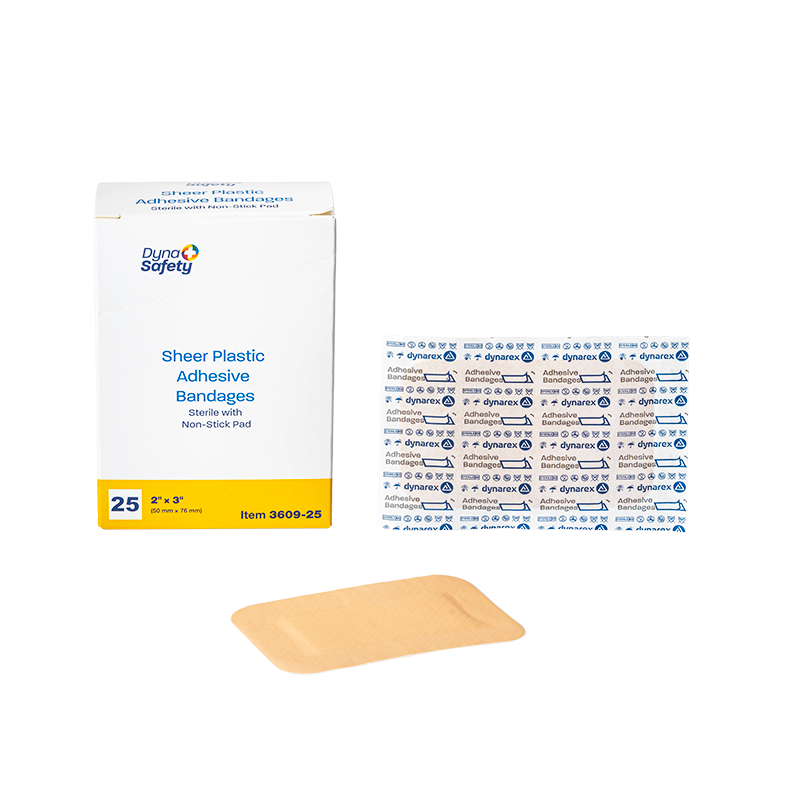 Dynarex DynaSafety Sheer Plastic Adhesive Bandages are premium-quality dressings crafted for effective protection of cuts and abrasions, featuring a long-lasting adhesive for a secure hold and non-stick pads for improved comfort.