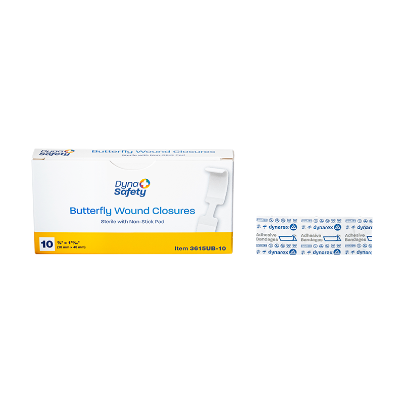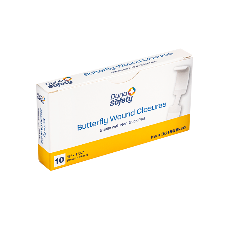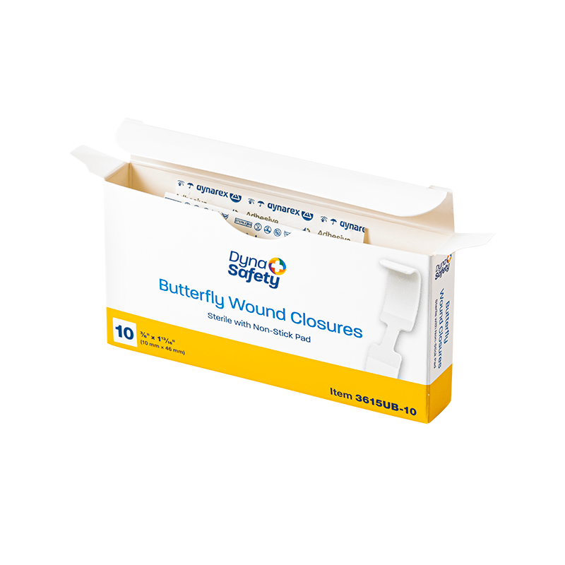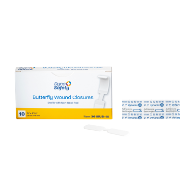 Dynarex DynaSafety Butterfly Wound Closures are narrow adhesive bandages designed to help close small wounds without the need for stitches. These sterile butterfly bandages are made from strong, flexible elastic materials for improved comfort. The Wound Closures feature premium adhesive material to help hold the bandage securely in place and flexible elastic components for a comfortable fit.