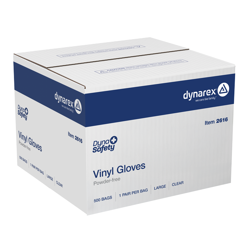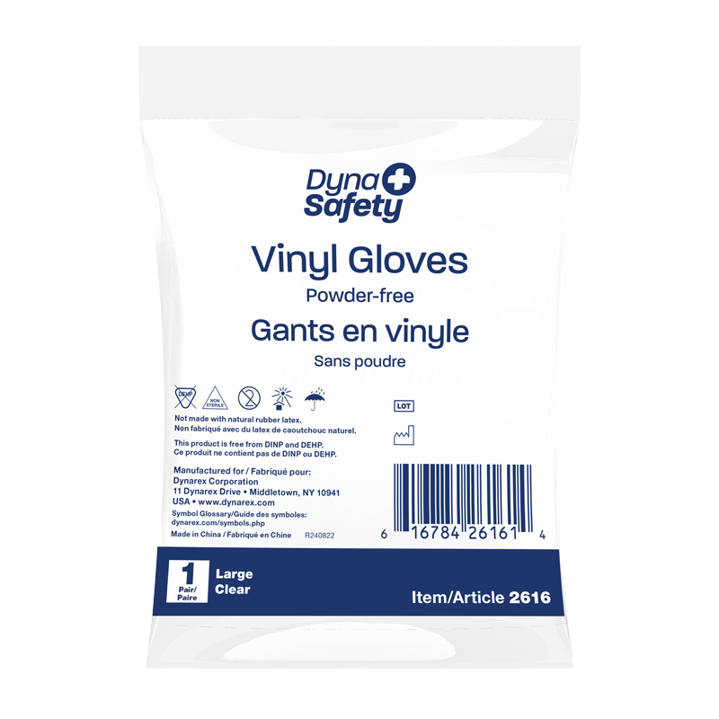 Dynarex DynaSafety Vinyl Gloves in a Bag are premium-quality, powder-free vinyl gloves designed for improved protection and flexibility. The Gloves are crafted from a soft vinyl resin for added elasticity and increased sensitivity. These ambidextrous Gloves feature a minimum thickness of 3 mils at the palm and 2 mils at the fingertips. Dynarex Vinyl Gloves in a Bag are designed with beaded cuffs to allow for easy donning. These Gloves have a secure fit around the wrist and hand-conforming flexibility to help prevent physical fatigue. Ideal for a variety of settings, including first-aid, medical facilities, long-term care, food service, and hair salons.