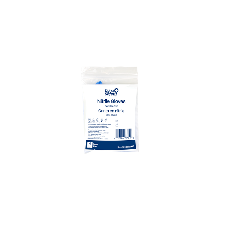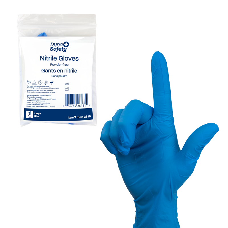 Dynarex DynaSafety Nitrile Gloves in a Bag are premium-quality, powder-free nitrile gloves crafted for optimal protection and comfort. The ambidextrous Gloves are designed with textured fingertips for increased grip and a minimum thickness of 2 mils at fingertips and palm for increased tactile sensitivity. The Gloves feature beaded cuffs to help ensure easy donning. These Gloves in a Bag have a secure fit around the wrist and hand-conforming flexibility to help prevent physical fatigue. The Nitrile Gloves are packaged in single or double pair bags. Ideal for use in a wide variety of settings, including hospitals, emergency situations, long-term care, tattoo studios, and veterinary practices.