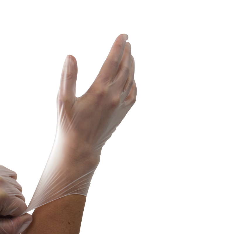 - High-quality vinyl gloves designed for tactile sensitivity and elasticity